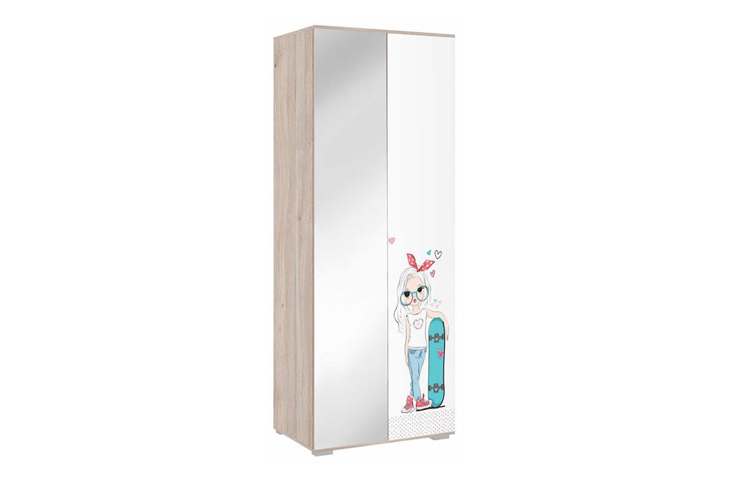 Стильный и модный шкаф «Алина». В шкафу штанга и съемные полки, позволят разместить всю вашу одежду. Модный и стильный рисунок на фасаде, придаст индивидуальность детской комнате, а тактильно приятные ручки-сердечки, очаруют каждую девочку. Принтерный рисунок устойчив к истиранию и ультрафиолету. Большое зеркало на двери визуально увеличит пространство в вашей комнате и в него можно смотреться в полный рост. Фасады комплектуются дополнительно "Доводчиком для петли 4-х шарнирной".
