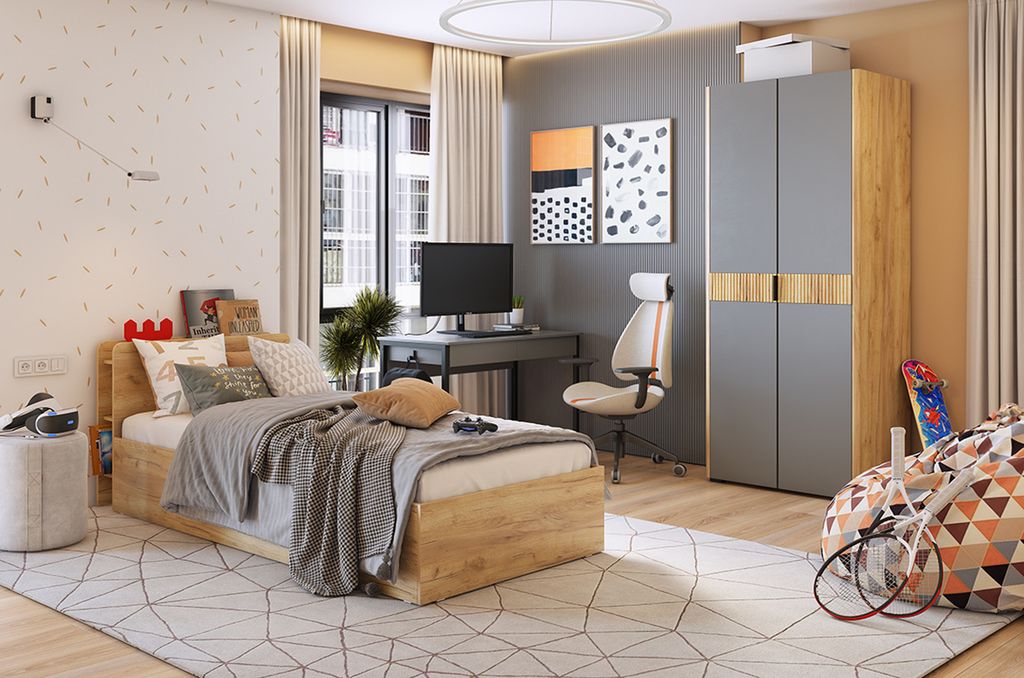 Каркас кровати Юниор 90х200 см (дуб крафт золотой) + Основание разборное 890х1980 (0.9) с опорами 1шт.