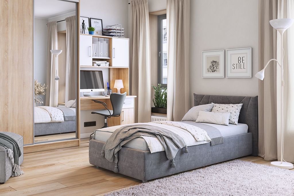 Модель данной односпальной кровати позволяет легко ее адаптировать в дизайн спальни, при этом создавая уют комнаты.