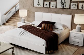 Мягкое изголовье дает возможность не обременять кровать большим числом декоративных подушек, а так же создаст комфортные условия для завтрака в постели и чтения книг перед сном.
