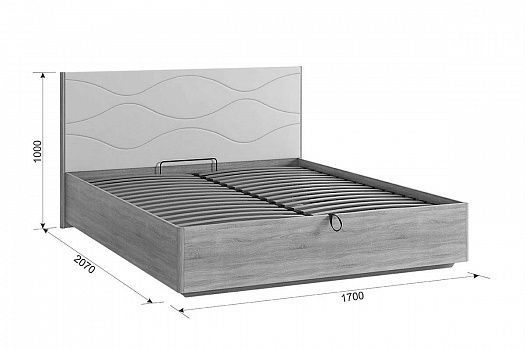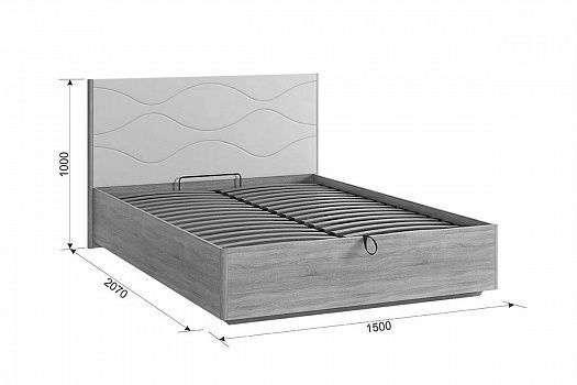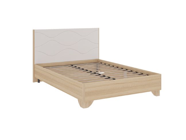Кровать состоит из каркаса из ЛДСП, мягкого изголовья из экокожи, ортопедического основания на опорах.
