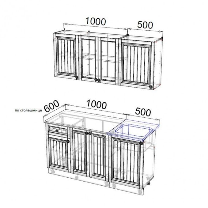 Нижние шкафы устанавливаются на опоре с приставным цоколем.