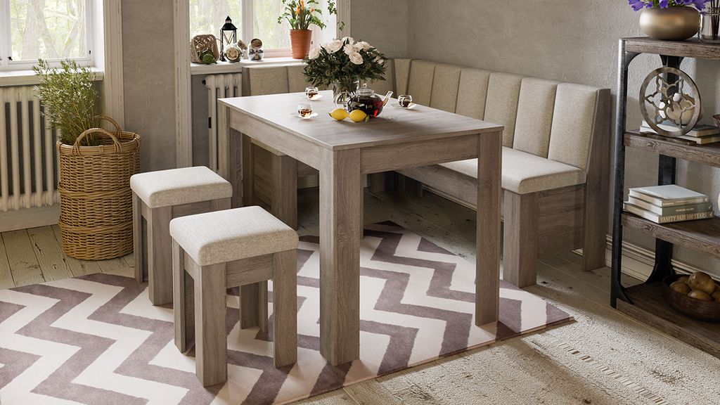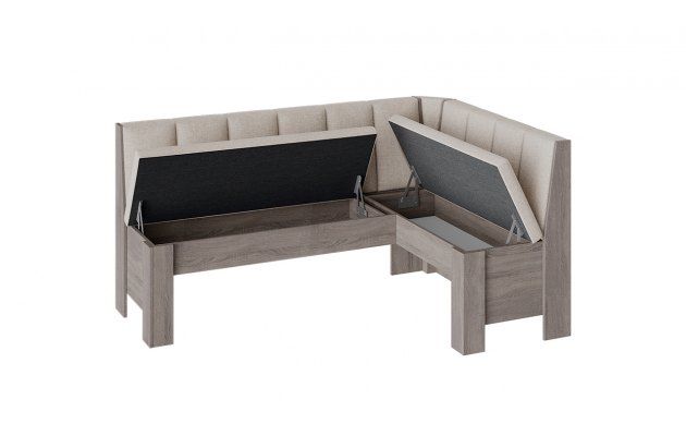 Скамья угловая «Ганновер» имеет места для хранения под сидениями, которые отличаются вместительностью, поэтому в них можно эффективно разместить все предметы, используемые на кухне, но которые хочется скрыть от лишних глаз. Для того чтобы облегчить процесс открывания, используется подъёмный механизм.