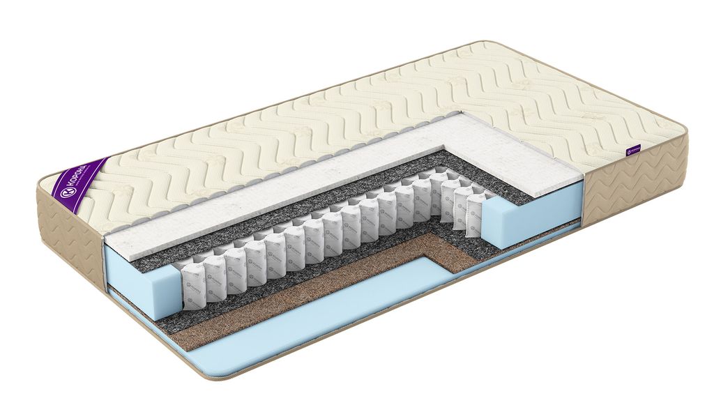 Превосходный матрас с ортопедическим эффектом и различной жесткостью сторон. Мягкая сторона из гипоаллергенного материала «Струттофайбер» разгружает позвоночник и благодаря большому количеству волокон хорошо сохраняет тепло. Гармоничное сочетание упругости кокосовой койры и высокая эластичность ортопедичекской пены с другой стороны позволяет выработать правильную осанку и препятствует искривлению позвоночника. Кроме того, жесткая сторона с кокосовой койрой и пенополиуретаном обладает высокой воздухопроницаемостью, что делает ее более прохладной.