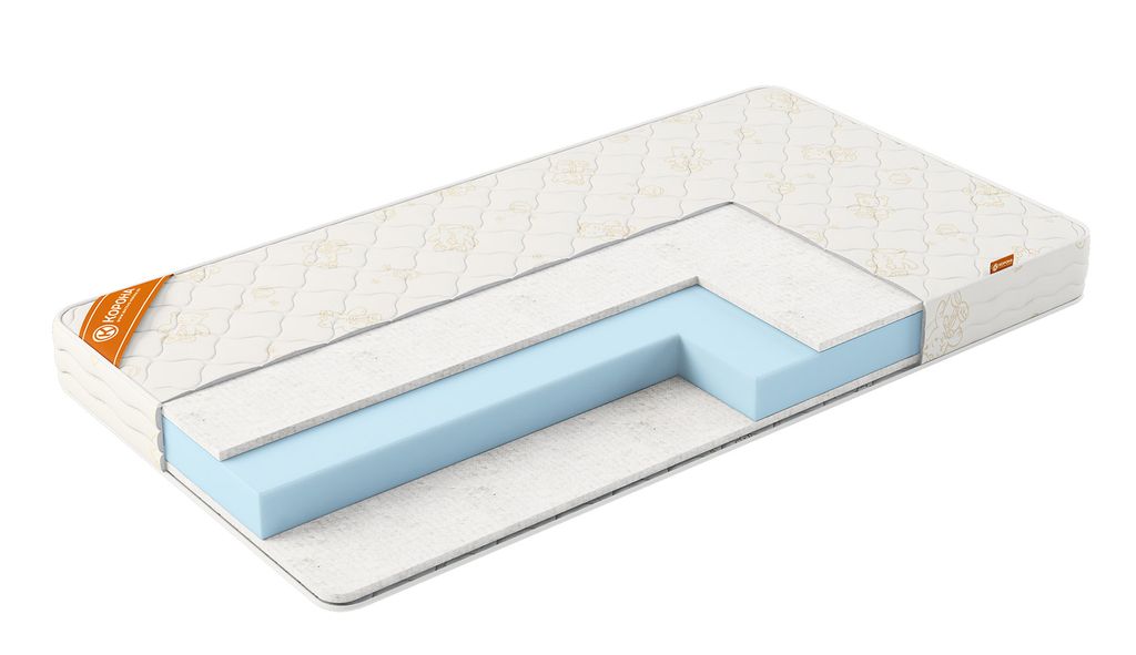 Беспружинный ортопедический матрас для детей возрастом старше 3-х лет. Струттофайбер, используемый в качестве наполнителя — антибактериальный материал, который состоит из вертикальных волокон, которые работают по принципу маленьких пружин. Он принимает форму тела и распределяет нагрузку по поверхности, имеет умеренную жесткость. Именно такая поверхность для сна рекомендуется для малышей в период формирования изгибов позвоночника.