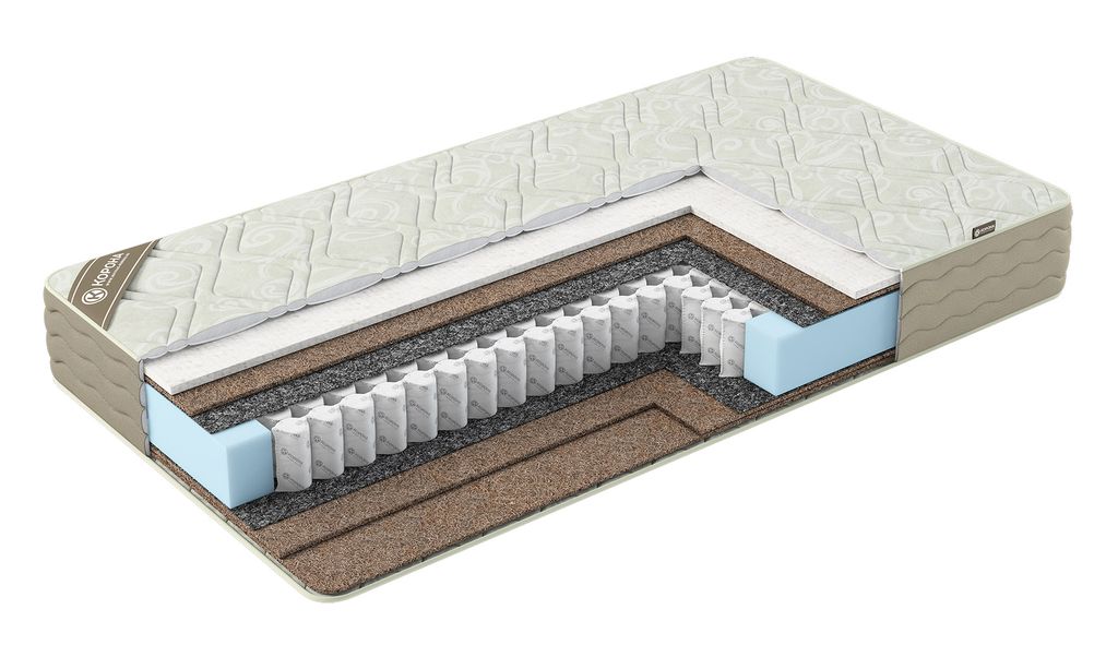 Разносторонняя модель с чехлом из льняного трикотажа. Двойной слой кокосовой койры с жесткой стороны матраса придает спальному месту ровность и упругость, что подойдет тем, кто привык спать в «спартанских условиях». Струттофайбер с одним слоем кокосового волокна с другой стороны будет более комфортным, что позволит подбирать жесткость матраса под потребности пользователя.