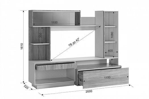 Предусмотрена ниша под большой телевизор, диагональю до 50 дюймов