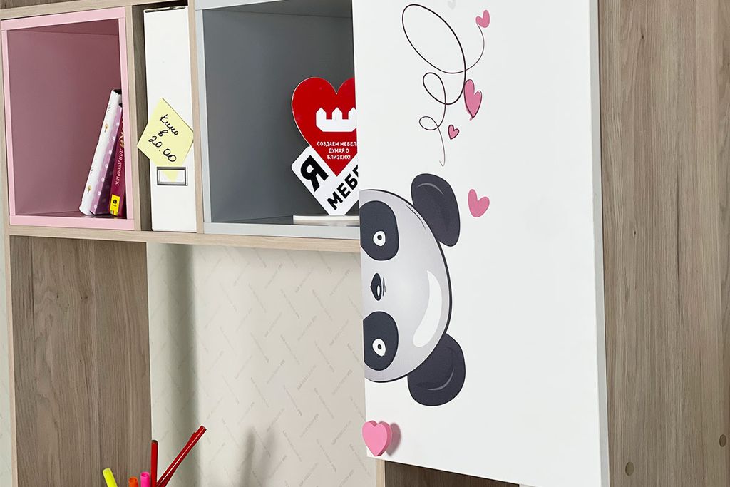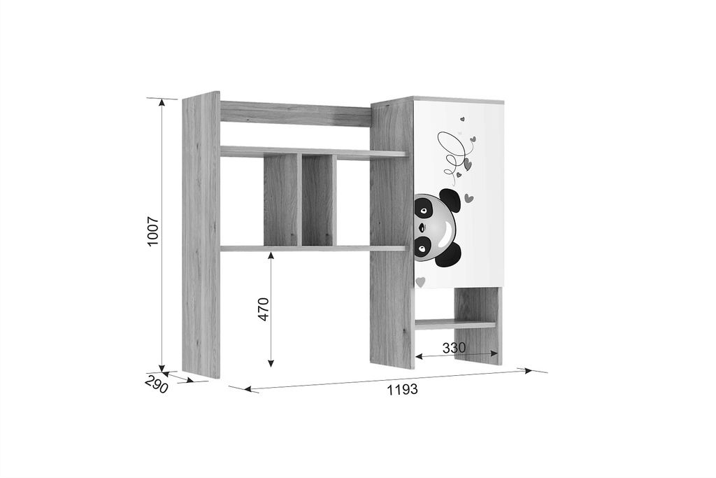 Надстройка Панда – это именно то, что нужно для создания удобного и функционального учебного места. Продуманная конструкция с открытыми нишами и удобной дверцей позволяет хранить весь необходимый инвентарь рядом: канцелярские принадлежности, любимые книги и документы. Элегантный дизайн с рисунком на фасаде добавляет неповторимость вашему интерьеру и подчеркивает его стиль. Благодаря высокому качеству материалов и технологий, рисунок сохраняет свою яркость даже при длительном воздействии солнечных лучей.