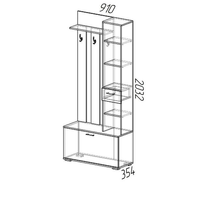 Вешалка с зеркалом модульной прихожей НИКА ВЗ-910 входит в состав модульной прихожей НИКА