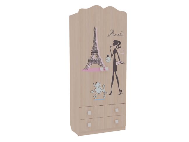 Вместительный шкаф «Амели» – обрадует каждую девочку. Длинная штанга для одежды и 2-а больших выдвижных ящика для белья - отличное решение для детской. Элегантный принтерный рисунок на фасадах выдержан в общем стилистическом решении. Рисунок устойчив к истиранию и ультрафиолету. Детская «Амели»- все, что нужно истинной леди! Рекомендуем комплектовать: с остальными модулями детской «Амели».