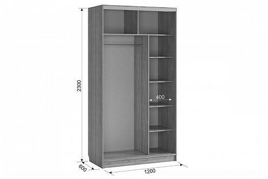 Состоит из: отделения со штангой для одежды, полок, верхних отделений для крупногабаритных вещей.