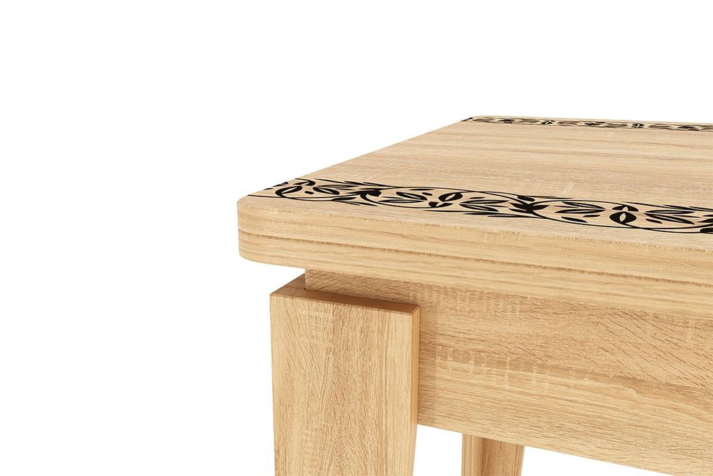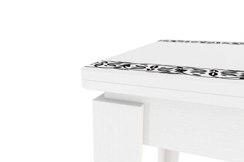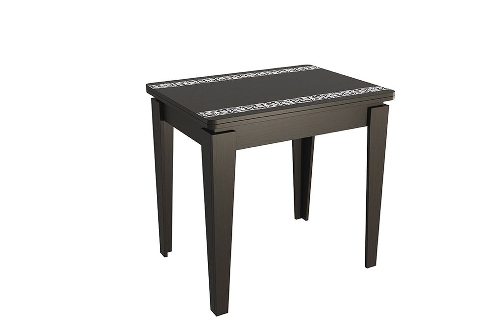 раскладывается и складывается, если нужно. Столешница декорированна классическим рисунком.