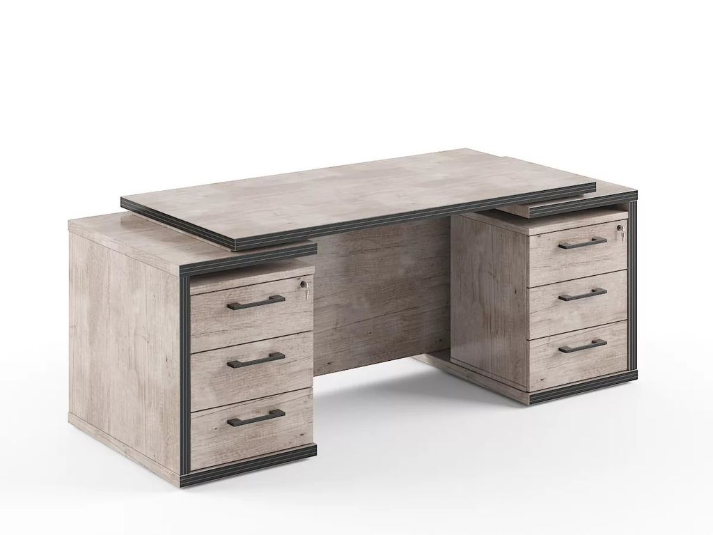 Столешница и опоры из ЛДСП толщиной 38мм с глянцевой акриловой кромкой 3D. Стол комплектуется двумя тумбами.
