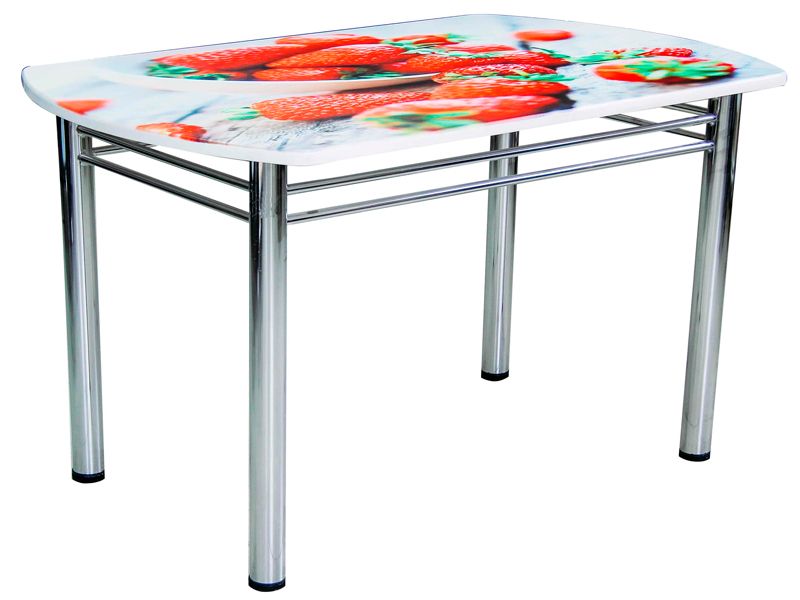⦁ Материал. Каркас стола изготовлен из хромированного материала. При изготовлении столешницы применялось стекло с нанесённым на него рисунком.