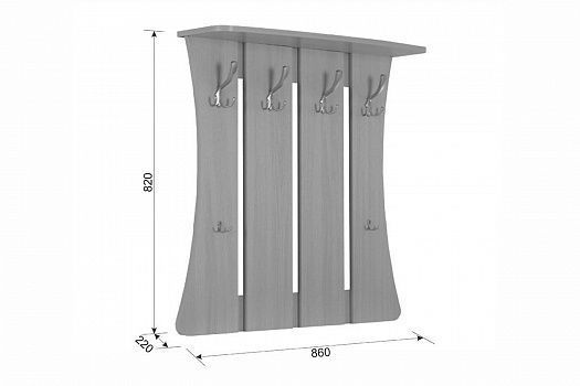 Состоит из: крючков для сумок и одежды, полки для головных уборов. Изделие симметричное.